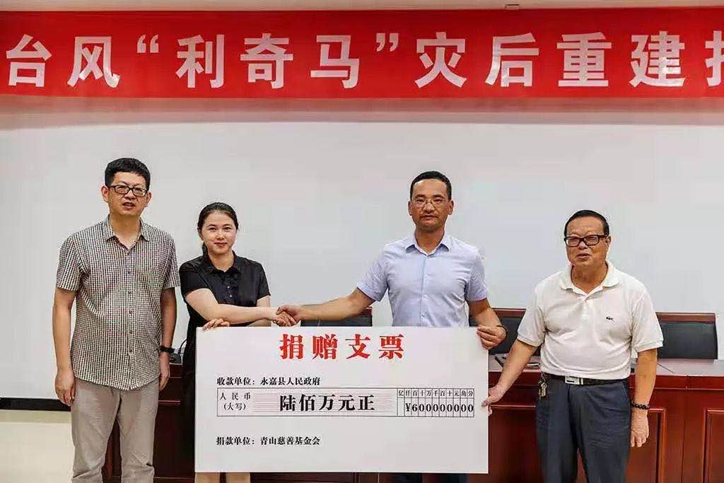 2019年8月10青山實(shí)業(yè)向永嘉災(zāi)區(qū)捐款600萬
